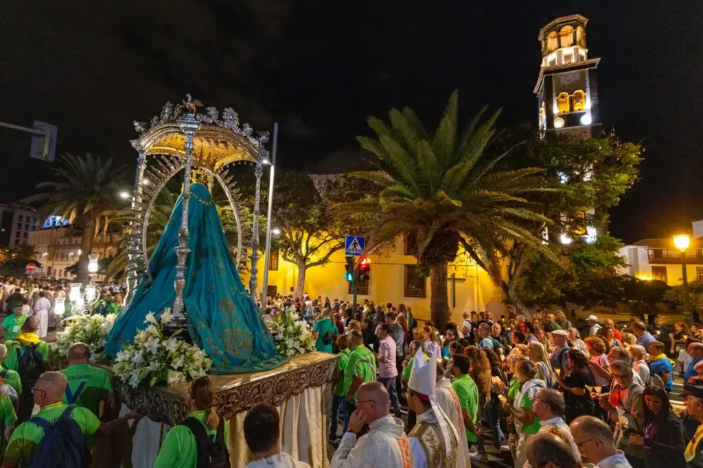 La imagen fue trasladada desde la Iglesia Matriz de La Concepción a la plaza de España para la celebración de una eucaristía de despedida. Una vez terminado el acto religioso, que estuvo oficiado por el obispo de Tenerife, Eloy Santiago, la procesión de regreso se inició a las 22:00 horas