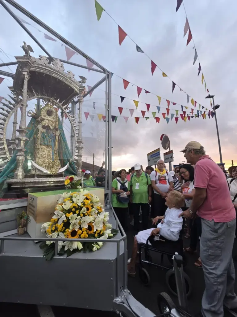 La Virgen de Candelaria ya es encuentra apenas a 200 metros de la entrada a la Basílica, donde se celebrará la Eucaristía de peregrinos a su llegada.