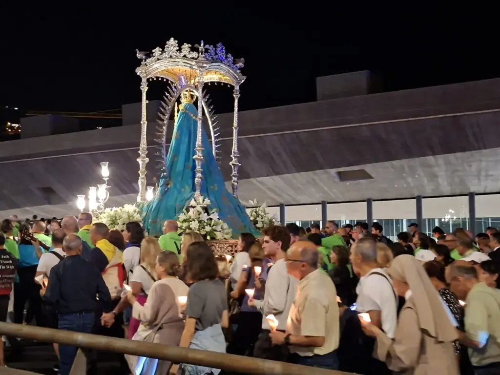 Después de media hora de descanso, comenzará la procesión de la Virgen de Candelaria hacia la entrada a la Basílica para la Eucaristía de peregrinos.