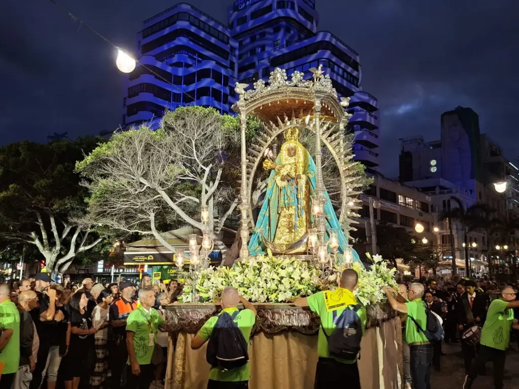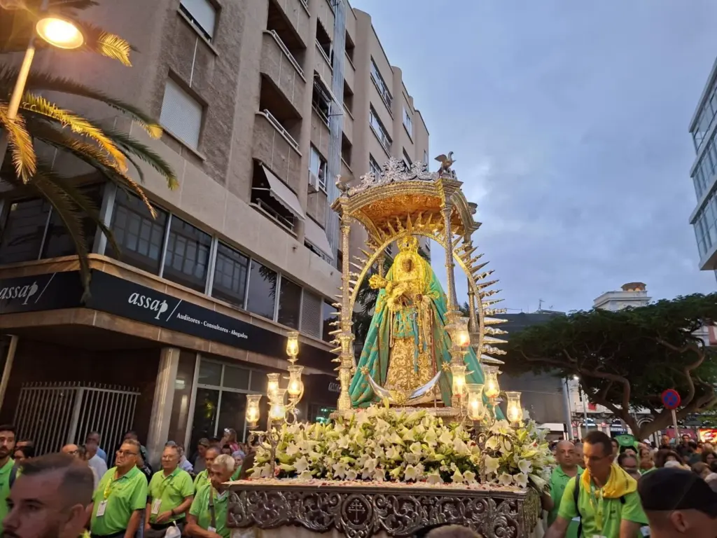 Recuerda que una vez que concluya el acto de despedida de la Virgen de Candelaria en Santa Cruz de Tenerife comenzará la procesión por las calles de la capital tinerfeña, comenzando el recorrido de regreso a la Basílica de Candelaria.