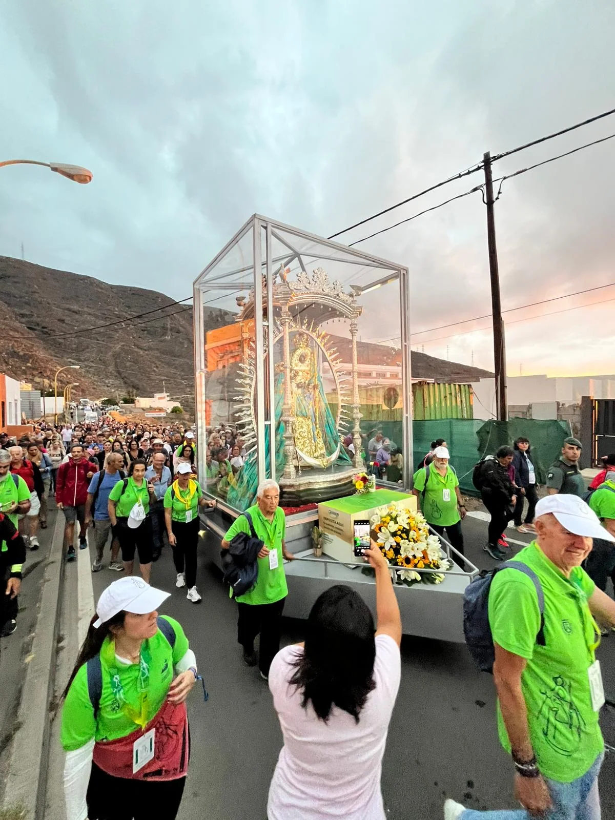 A estas horas la Virgen de Candelaria, acompañada y arropada por sus feligreses, continúa su peregrinación TF-28 hacia la estación Disa.