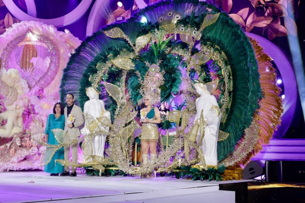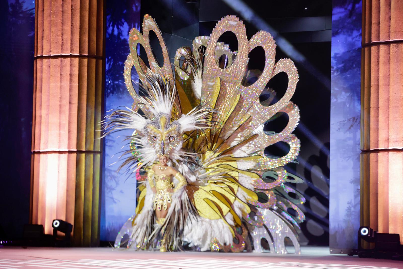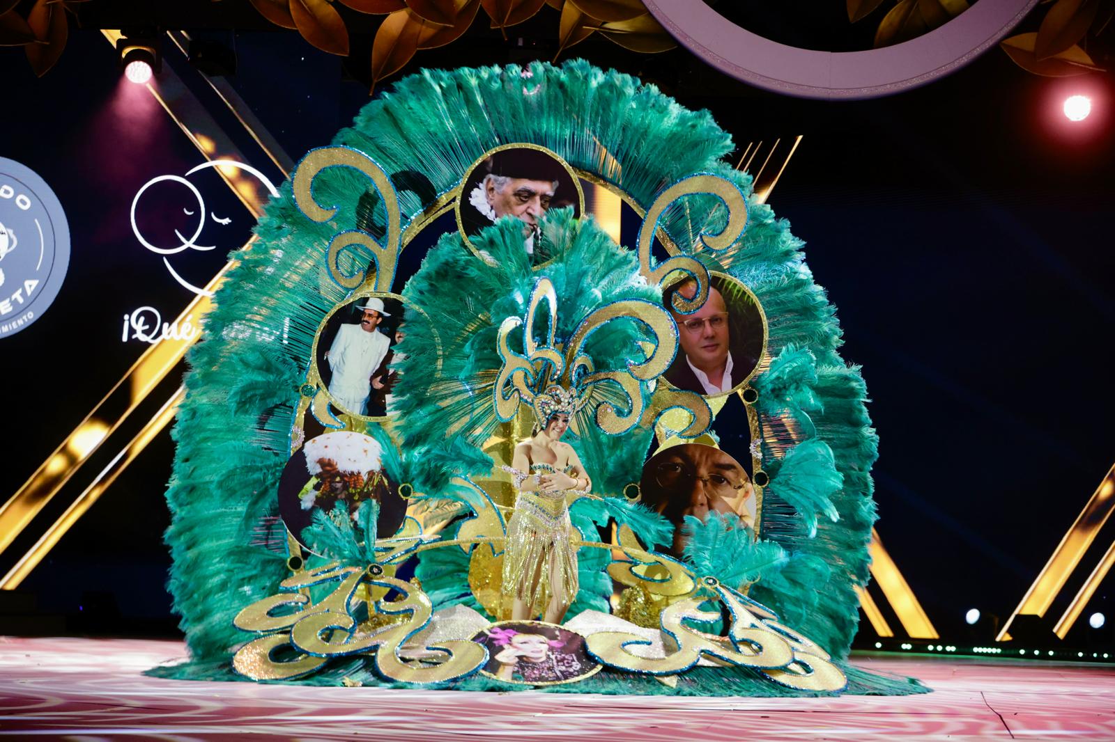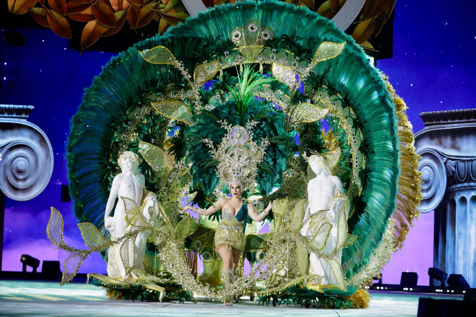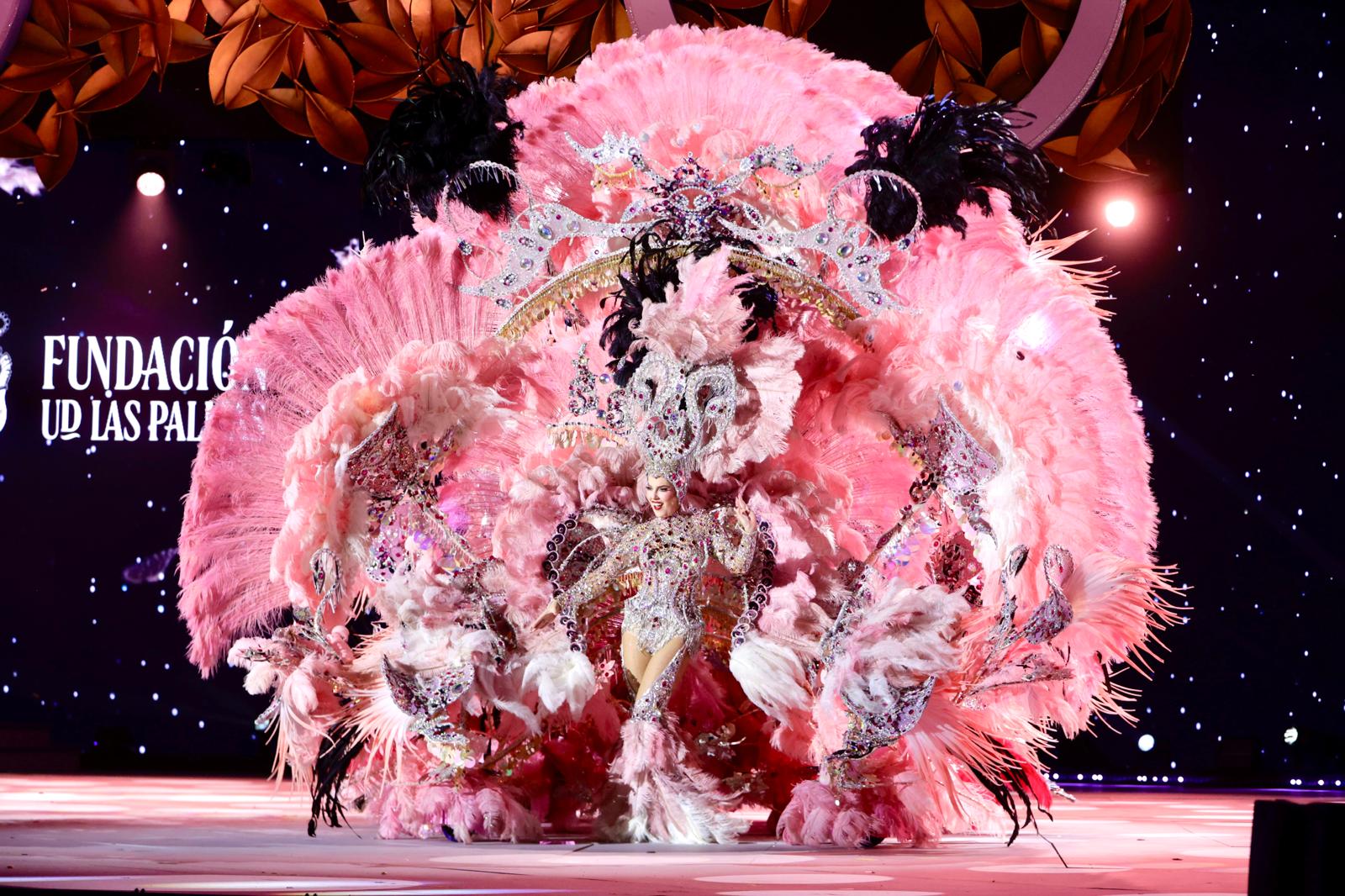 Carla Miranda, con la fantasía «El poder de las plumas». Diseño de Juan Carlos Armas Febles, patrocinado por la Fundación Canaria Unión Deportiva Las Palmas.