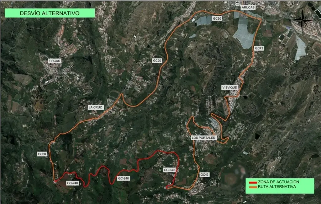 Para facilitar la movilidad a los conductores de la zona se establece un desvío por la carretera de Visvique (GC-43) hasta Arucas, y ahí, por la GC-20 hasta Firgas, o, por la GC-30, hasta Los Chorros. La duración estimada de los trabajos es de 15 días de lunes a viernes.