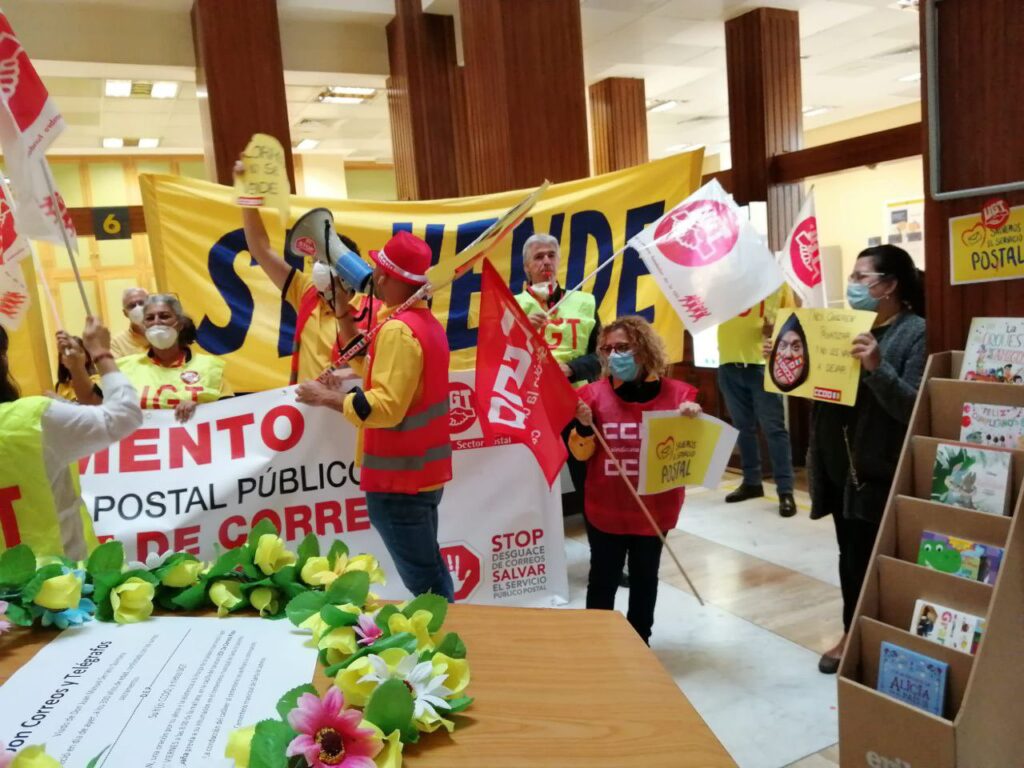Representantes de CCOO y UGT han convocado una huelga general para protestar por la reconversión del servicio postal público