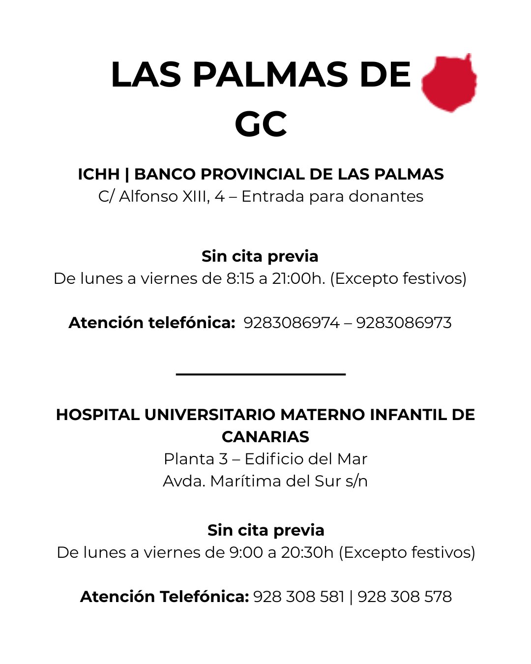 La Dirección General de Hemodonación y Hemoterapia mantiene operativos los puntos fijos de donación en toda Canarias. Además, tiene los puntos itinerantes que recorren el archipiélago con unidades móviles.