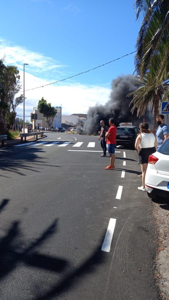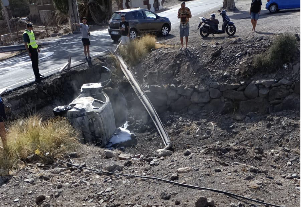 A las 17:06 el 112 Canarias recibió una llamada en el Centro Coordinador de Emergencias y Seguridad (CECOES). La alerta avisaba de que se había producido el vuelco de un vehículo tras salirse la vía por la circulaba. Como consecuencia de la salida cayó por un desnivel el vehículo y posteriormente terminó por incendiarse.