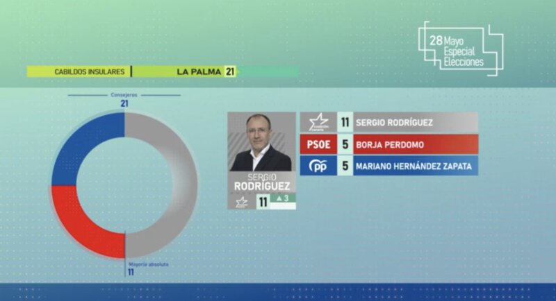 El resultado de esta jornada electoral deja por ahora en el caso de las dos fuerzas mayoritarias del Cabildo la misma «foto finish» que en 2019 (Morales aventaja en unos 2.500 votos al nuevo candidato socialista, Augusto Hidalgo), lo que permitiría a NC y PSOE sumar una mayoría suficiente para gobernar (ocho de 29 consejeros).