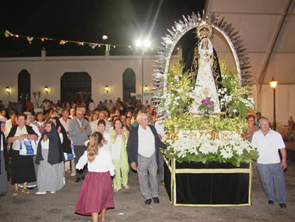 Los romeros y romeras caminan hasta Tinajo para congregarse y comenzar el recorrido desde la Iglesia de San Roque y finalmente alcanzar por la noche la ermita de Mancha Blanca. Allí, los feligreses se encuentran con la Virgen y le dejan sus ofrendas.
