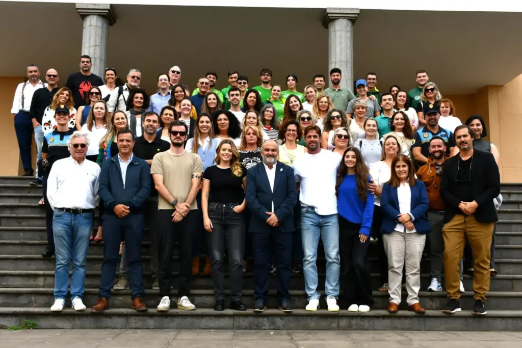 Gil ha obsequiado con varios recuerdos al equipo de reparto y a los protagonistas les ha regalado una manta esperancera, símbolo de la tradición artesanal y la identidad canaria.
