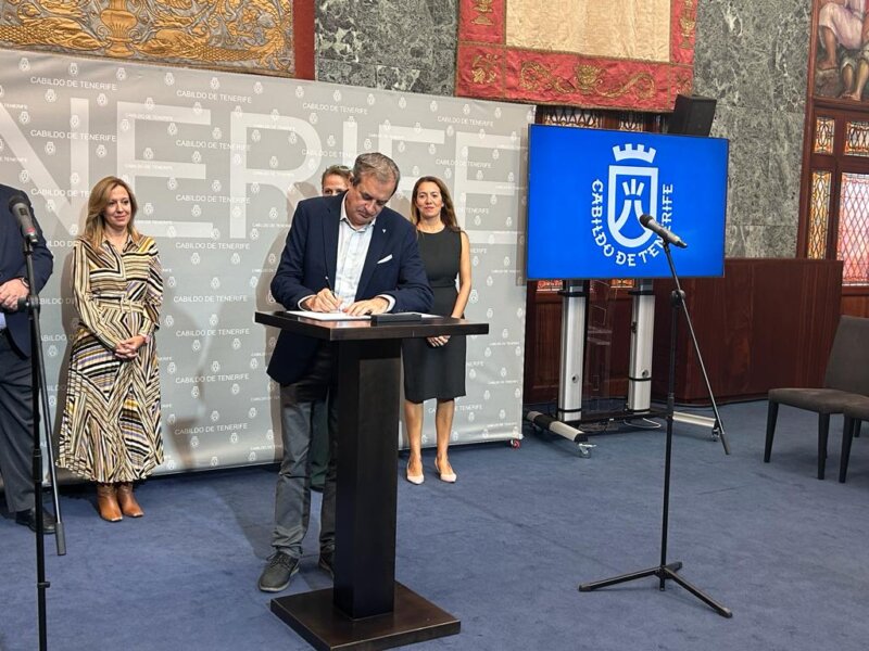 El administrador único del ente público RTVC, Francisco Moreno, ha firmado este lunes 23 de octubre un acuerdo de colaboración con el Cabildo de Tenerife, la Fundación Canaria para la Reforestación (FORESTA), el Clúster INCOLAB, INNOVARIS Consultores, la Confederación Canaria de Empresarios (CEE) y la Confederación Provincial de Empresarios de Tenerife (CEOE-Tenerife) para la restauración de los montes de Tenerife afectados por el último incendio.