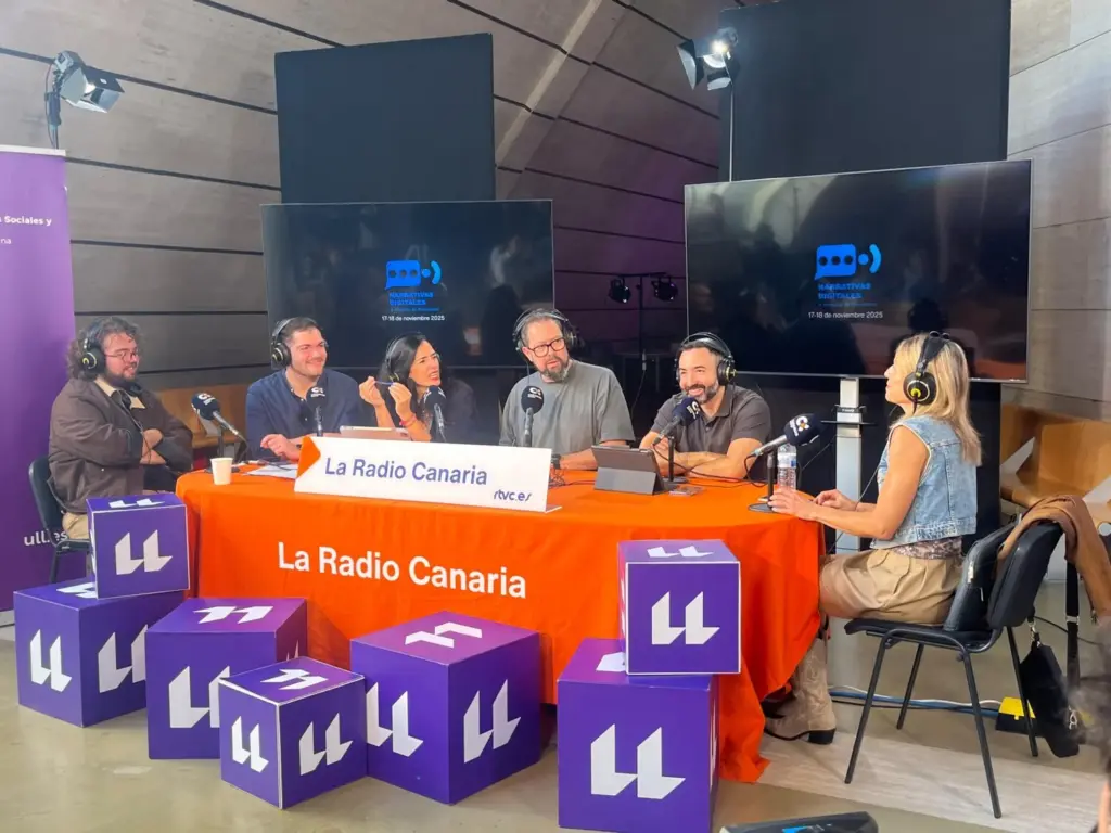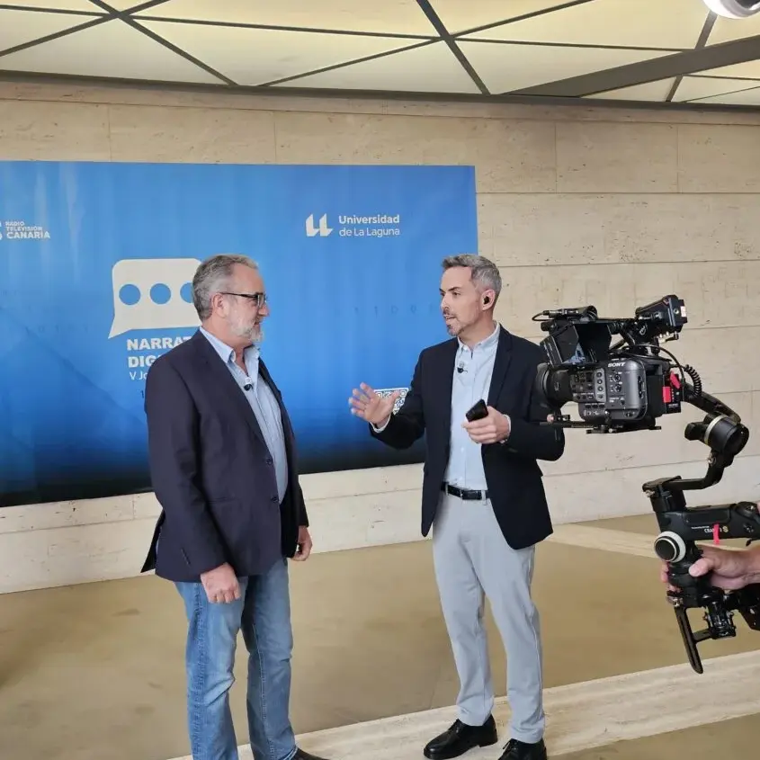 De manera simultánea, el programa Buenos Días Canarias de TV Canaria, también ha trasladado a parte de su equipo hasta la Universidad de La Laguna para realizar conexiones en directo. Cabe recordar que esta experiencia de trabajo conjunto forma parte de la Cátedra de Comunicación de RTVC y la Universidad de La Laguna y ha sido posible gracias a la participación de los centros que se han encargado de la grabación del evento, de trasladar la señal de streaming que ha hecho posible su retransmisión y del montaje de un set de radio y realización que emula las condiciones reales de trabajo en una retransmisión de este tipo.