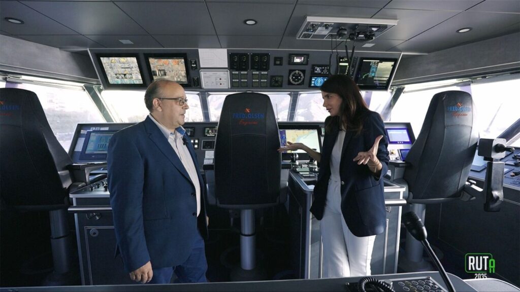 ‘Ruta 2035‘ regresa este sábado 3 de mayo a las pantallas de la Televisión Canaria a partir de las 13:50 horas. El programa se pregunta como va el proceso de descarbonización en un sector clave para la movilidad de los canarios como el transporte marítimo. Yara de León accede al puente de mando del buque Bajamar Express para entrevistar a Iván Fernández, Responsable Técnico de la empresa Fred Olsen, con quien conversa acerca de la disminución del uso de combustible fósil en los buques, la utilización de combustibles renovables o la apuesta por el hidrógeno en los sistemas de propulsión de los barcos de pasajeros en las islas.