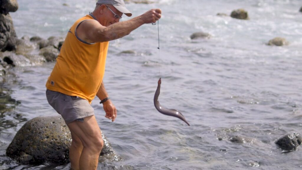 En los charcos y rocas que salpican la costa sur de la isla, Andrés Antonio conserva el arte ancestral de «morenear». Una técnica que ya practicaban los aborígenes, que consiste en pescar en los fondos rocosos, con marea baja, este pez astuto y feroz que se oculta entre las rocas. Mientras entona el tradicional canto para el «moreneo» —»Oh morenita oh, que venga la grande, la chica no«—, Andrés recuerda cómo aprendió de su padre este ritual que ahora él enseña a sus nietos.