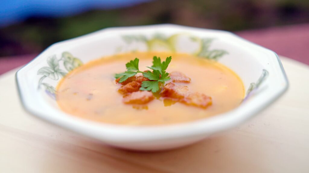 La cocina del interior de El Hierro nos lleva también a descubrir el caldo de queso, elaborado por Carmen Padrón con papas, cebolla, pimiento, hierbas aromáticas y, cómo no, queso herreño. Una sopa antigua, humilde, sabrosa, que se comía todo el año y sigue presente en muchas casas de la isla.