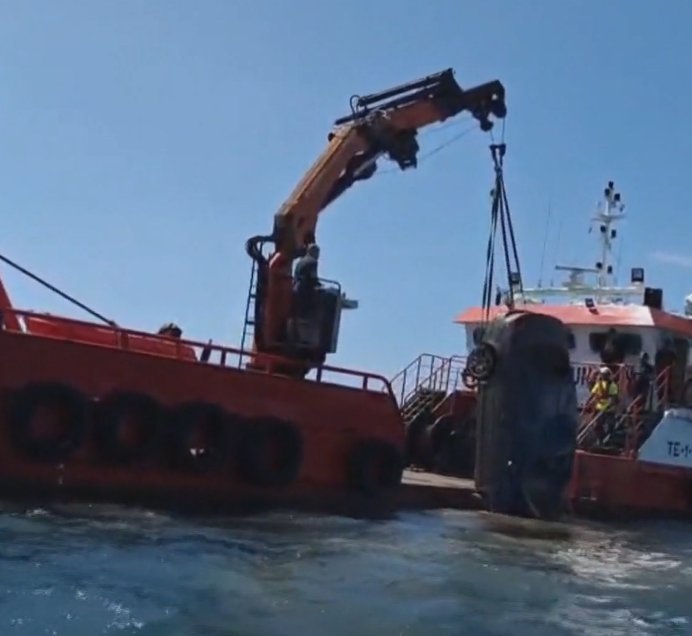 Después de un primer intento fallido, consiguen sacar a la superficie el coche que fue arrastrado por la riada de marzo al mar en Telde. El vehículo es recuperado después de que han mejorado las condiciones marítimas.