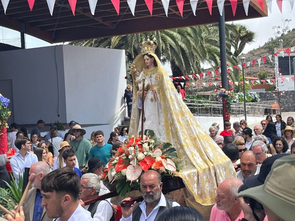 A las 11:00 ha salido la imagen en procesión para ser agasajada por todos los peregrinos que la han acompañado durante su recorrido por la isla.