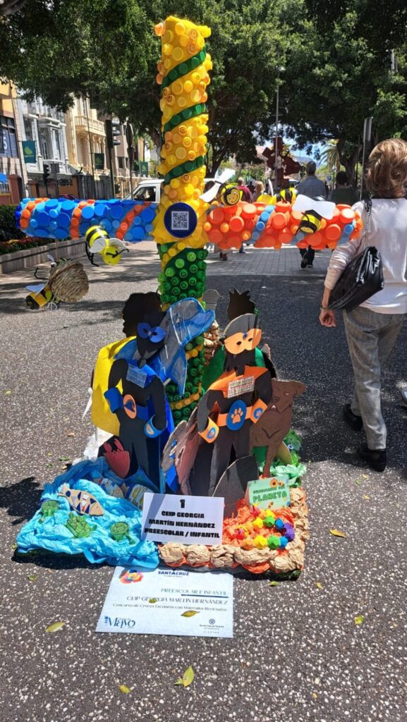 La jornada comenzó a las 9:00 horas con el tradicional Concurso de Cruces de Flores Naturales ubicadas en los distintos barrios y calles de la ciudad. Con un multicolor recorrido, el XVI Concurso-Exposición de cruces escolares realizadas con material reciclado reúne este año a 31 centros educativos de la ciudad en la Rambla de Santa Cruz. Por un lado, participan 9 centros escolares de Preescolar e Infantil, 17 en la modalidad de Primaria y Educación Especial, y 5 de Secundaria y Educación de adultos.