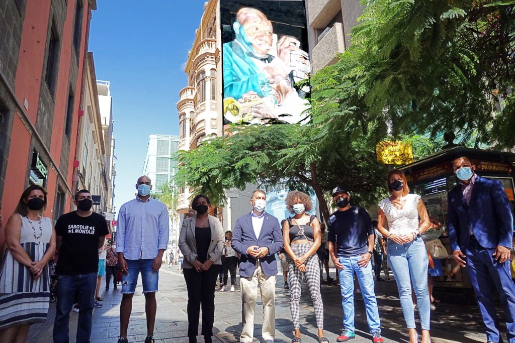El Ayuntamiento de Santa Cruz de Tenerife ha presentado el mural gigante en homenaje a los músicos que actúan en la calle, especialmente al trompetista dominicano Nilo Caparrosa