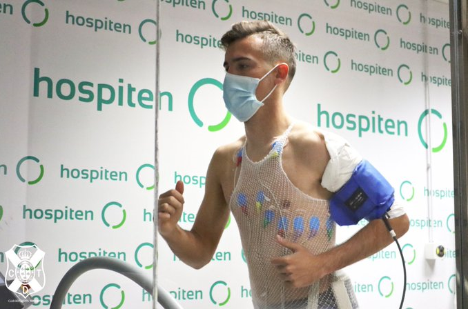 El futbolista murciano llegó este miércoles a Tenerife para incorporarse a la disciplina del conjunto chicharrero, con quien se ha comprometido hasta final de temporada.