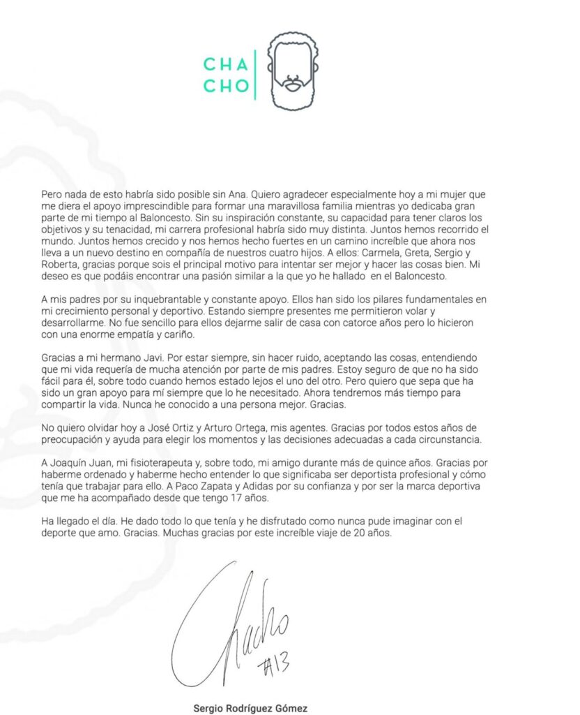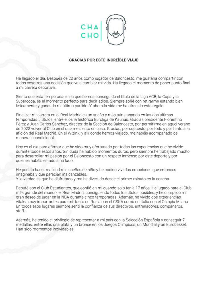 El jugador, en su comunicado, quiso agradecer a todas las personas que siempre han estado con él, reconoció que ha podido “hacer realidad” sus sueños de niño, que “parecían inalcanzables”, y remarcó su pasión por el baloncesto.