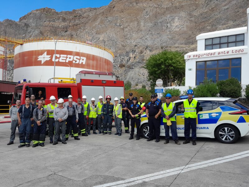 La compañía Cepsa ha realizado un simulacro en su planta de almacenamiento de La Jurada, con amplio despliegue externo. Se simuló la activación del Plan Autonómico de Riesgo Químico en Canarias