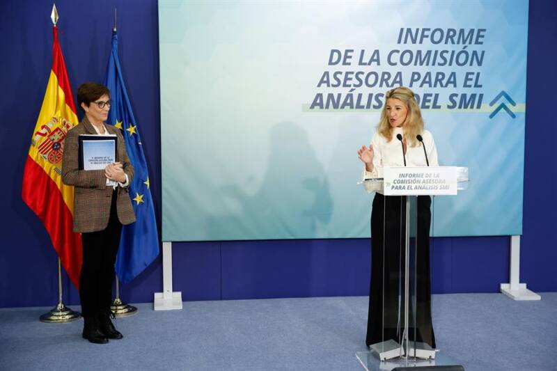 Tras la reunión mantenida en el Ministerio de Trabajo, y a la que solo han acudido UGT y CCOO mientras que CEOE ha remitido su propuesta por escrito, las partes siguen sin tener una cifra concreta del Gobierno que este lunes recibió el informe de los expertos aconsejando un alza de entre el 4,6 % y el 8,2 %, lo que situaría el SMI en un máximo de 1.082 euros en 14 pagas frente a los 1.000 euros vigentes.