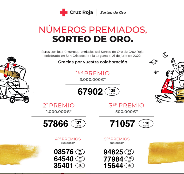 Dónde consultar los números premiados del Sorteo de Oro de Cruz Roja