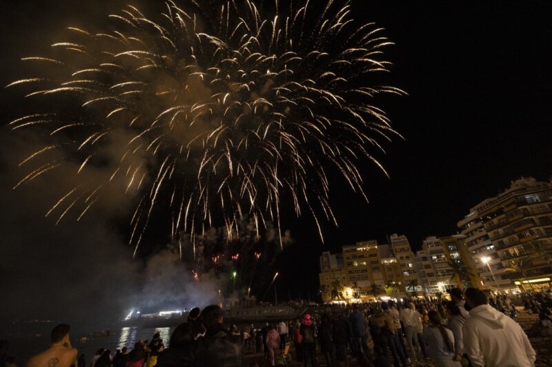 Diecisiete minutos de luz, de ecos de estallidos y silbidos, de figuras espectaculares, iluminaron la Playa de las Canteras, ante una audiencia de 10.000 personas en el paseo de Las Canteras.