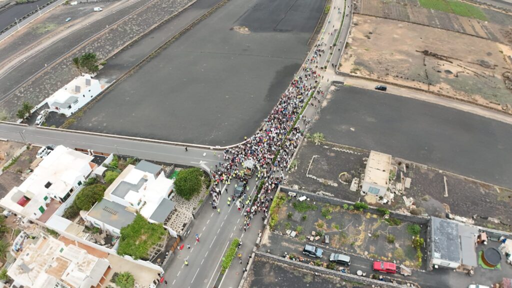 Este domingo, la Virgen de Los Dolores comenzó su regreso a la ermita de Mancha Blanca, tras pasar varios días en Arrecife. La procesión partió a las 6 de la mañana, después de la Oración Mariana celebrada en la iglesia de San Ginés. Unas 1.300 personas la acompañaron en su trayecto, según estimaciones del Consorcio de Emergencias.