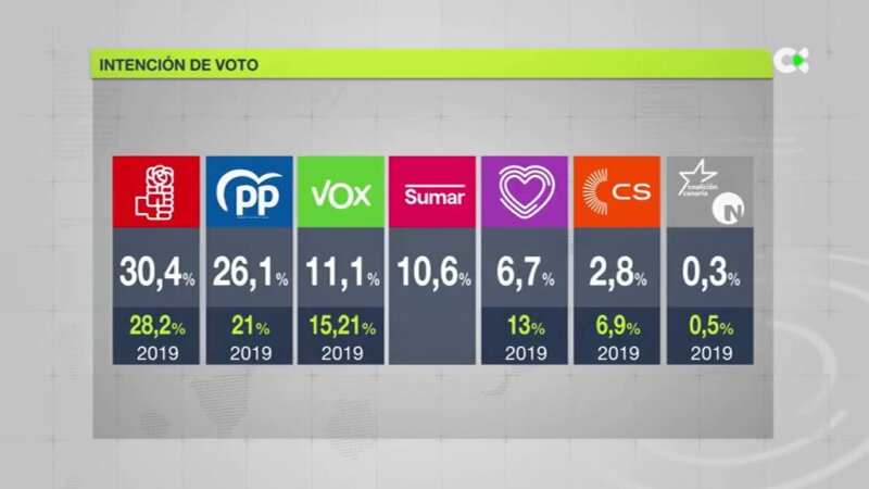 No obstante, el PP aunque desciende, sí recorta ligeramente su distancia con el PSOE, que es ahora de 4,3 puntos debido a la caída más acusada de los socialistas.