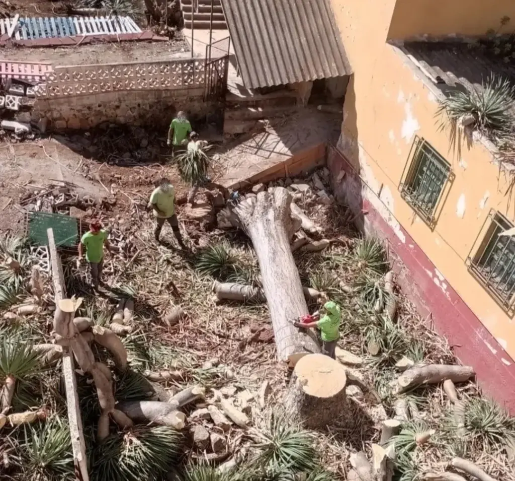 El drago situado en una propiedad privada a la entrada de La Laguna, junto a la Avenida Lora Tamayo, ha sido finalmente talado por operarios de una empresa de jardinería, pese a las peticiones de asociaciones ecologistas para evitarlo.