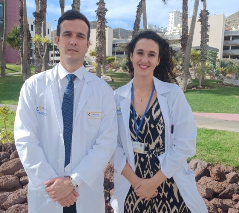 El jefe de Servicio de Angiología y Cirugía Vascular del Hospital Universitario Insular de Gran Canaria, Airam Betancor; y la médico especialista del servicio de Angiología y Cirugía Vascular, Isaura Rodríguez, han presentado esta técnica. Un procedimiento que se realiza por vía endovascular, menos invasivo que los métodos tradicionales realizados mediante cirugía abierta, con una rápida recuperación y una disminución en las complicaciones del paciente.