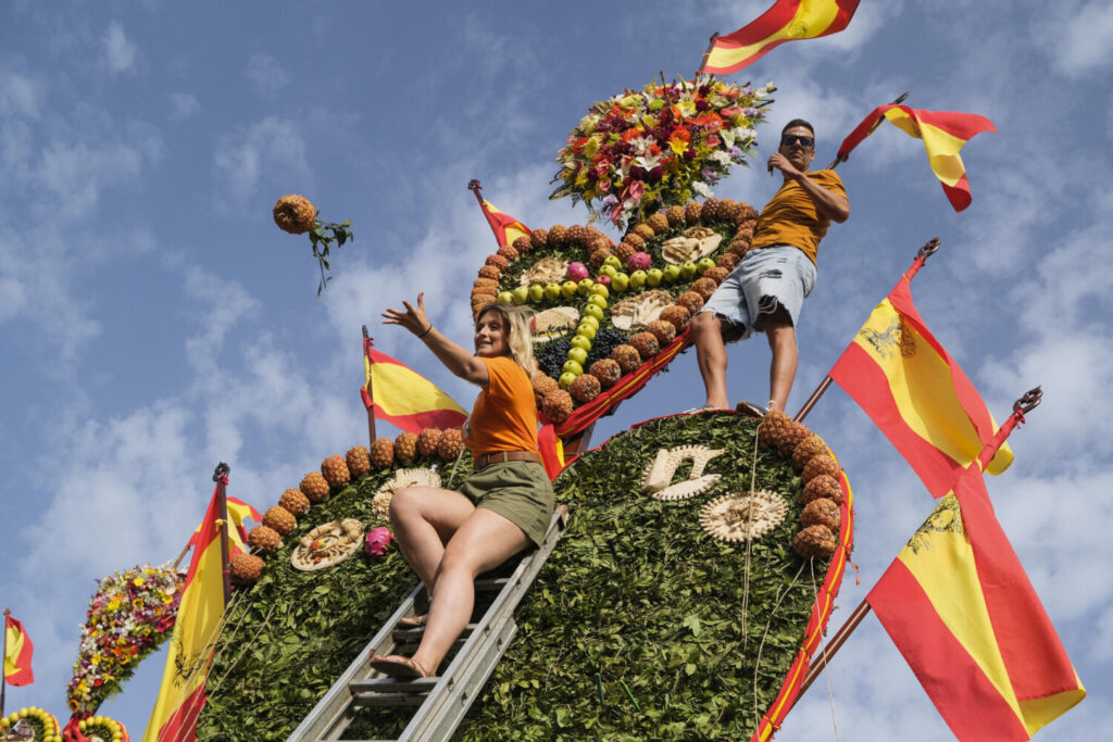 Tejina vivió este lunes su particular “batalla” por recolectar las frutas que fueron utilizadas por los vecinos para confeccionar los tradicionales corazones en honor a San Bartolomé. Se trata de uno de los momentos más divertidos de estas fiestas patronales.