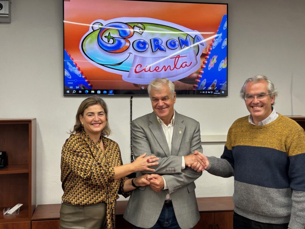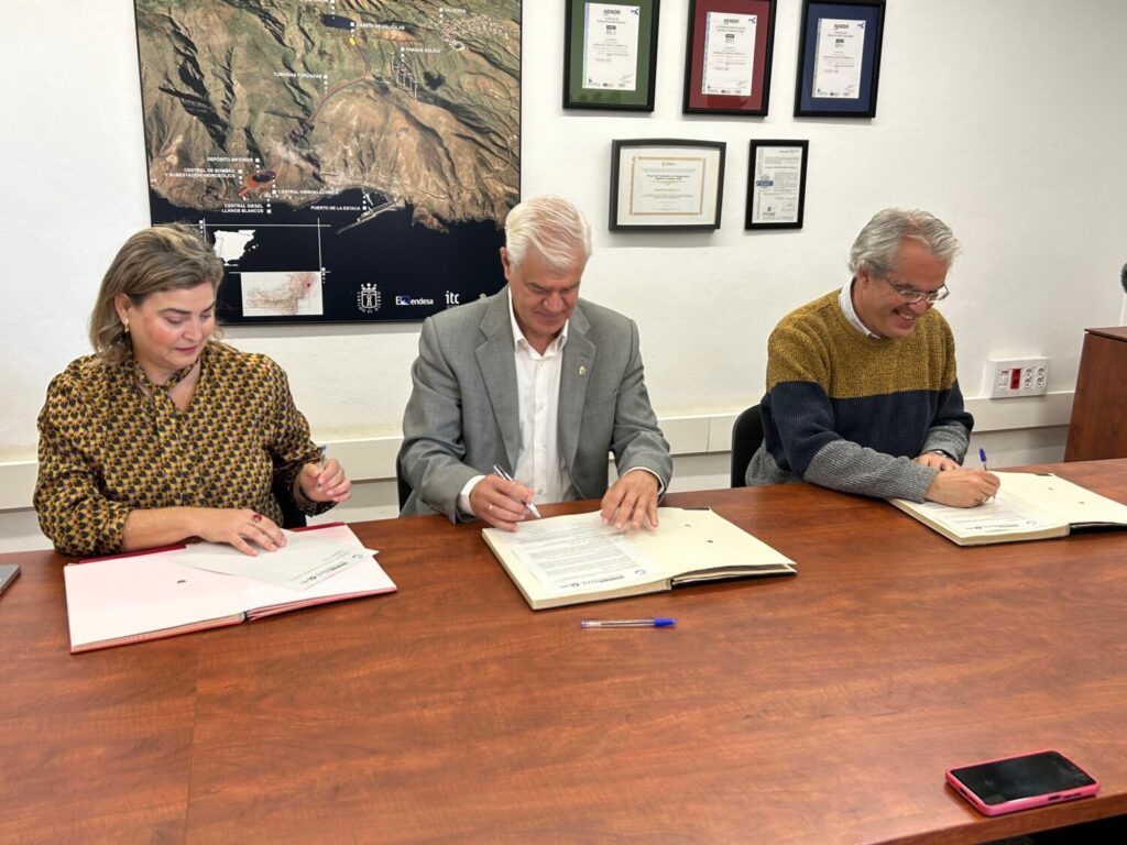 En la mañana de este martes 14 de mayo se ha producido la firma entre el presidente del Cabildo de El Hierro y de la empresa Gorona del Viento, Alpidio Armas, y la administradora general de Radio Televisión Canaria, María Méndez Castro, que pone de manifiesto la cesión de la nueva serie ‘Gorona Cuenta‘ a la televisión autonómica para su emisión a partir de este fin de semana. Acompañó a los representantes de ambas entidades el autor de la producción audiovisual, Rubén Armiche.