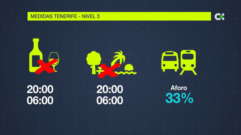 Tenerife aplicará nuevas medidas. Las medidas aprobadas en Consejo de Gobierno para contener la propagación de la COVID-19 en la isla de Tenerife se prevé que empiecen a aplicarse este sábado a las doce de la noche.