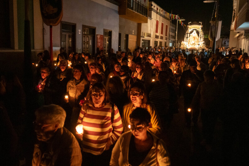 Como cita previa, fieles venidos de toda la geografía insular se acercaron este jueves, 1 de febrero, a los pies de la Patrona de Canarias para acompañarla con la luz de las candelas y con el alumbrado público apagado a su paso en su recorrido por la Plaza de la Patrona de Canarias, Calle La Arena (Obispo Pérez Cáceres) y Calle Los Príncipes.