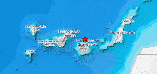 El Instituto Geográfico Nacional detectó un terremoto en Gran Canaria con epicentro a 36 kilómetros de profundidad en la madrugada de este martes