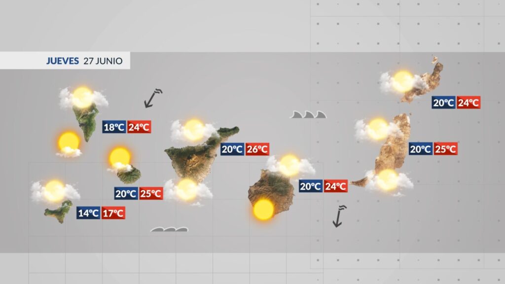 La previsión del tiempo en Canarias este jueves 27 de junio 2024 se verá condicionada por la proximidad de una borrasca en el entorno del Golfo de Cádiz. Aunque muy lejos del archipiélago dejará el pasillo libre para que nos sigan llegando alisios húmedos de largo recorrido.