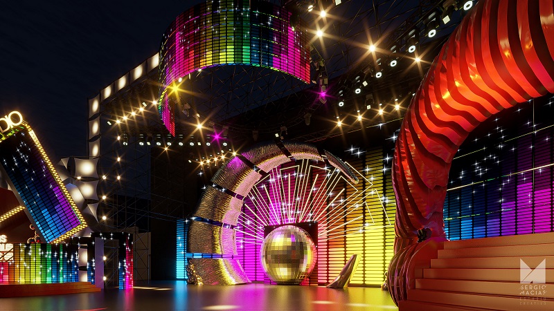 “Un escenario, que más que un escenario será una gran discoteca”, según ha asegurado Macías. La iluminación y la tecnología jugarán un papel muy importante para recrear el ambiente de Studio 54. Contará con una pantalla led trasera de más de 360 metros cuadrados, y elementos móviles que permitirán jugar con la escenografía de una manera innovadora.
