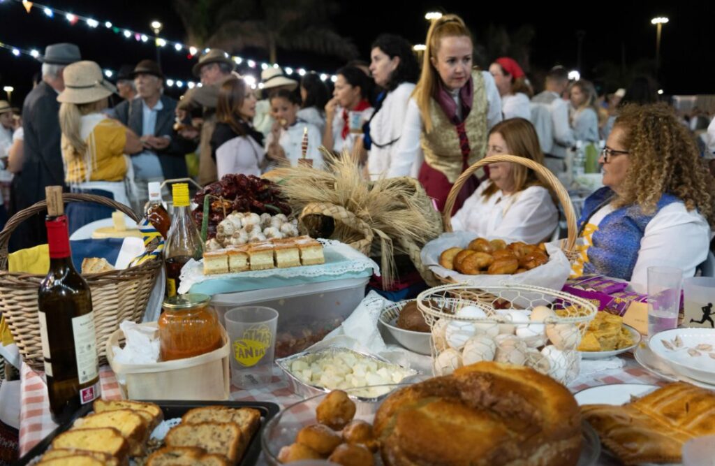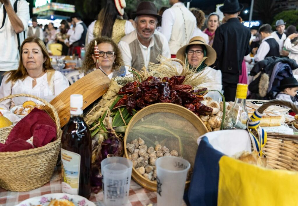 Y es que además de la vestimenta tradicional, la música y la danza, también la gastronomía ocupa un lugar central en el ‘Baile de Taifas’. Otro de los hitos de esta edición son las 400 mesas dispuestas en el recinto para disfrutar en familia y amigos de las delicias de nuestros productos típicos. No pueden faltar el queso majorero, las jareas, el sancocho, las papas arrugadas y las pellas de gofio para darle sabor a la noche y rendir homenaje al patrimonio culinario de las Islas.
