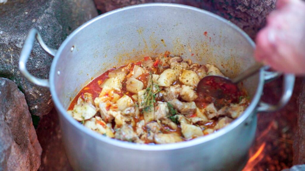 El segundo plato de esta nueva entrega de ‘Sabores Isleños’ es una receta de Carmen López, vecina de Las Pasadillas que preparara un típico mojo de cochino negro a la brasa, un guiso tradicional majado con ajo y aderezado con especias y hierbas de la zona. Jéssica le echará una mano a preparar el majado y echar un ojo a las brasas mientras Carmen repasa la historia de la comarca.