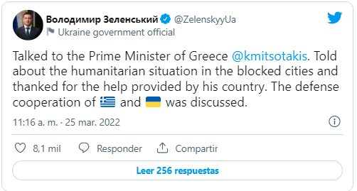 El Gobierno de Grecia ha asegurado este lunes que entregará los alrededor de 100 vehículos de combate de infantería de diseño soviético a Ucrania, cuando los vehículos de combate de infantería alemanes de sustitución hayan llegado al país heleno.