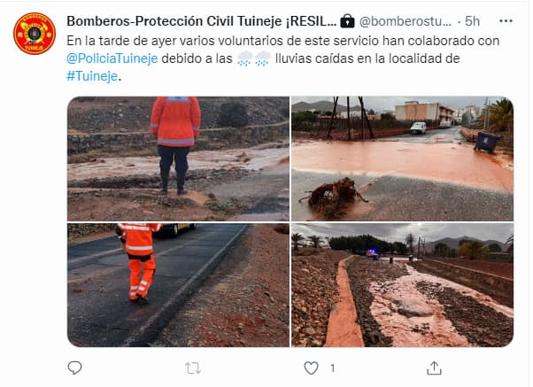La tromba caída en el día de ayer en Fuerteventura afectó especialmente a Tuineje, donde varias calles quedaron anegadas y se precisó la actuación de Bomberos y Policía para recuperar los accesos.