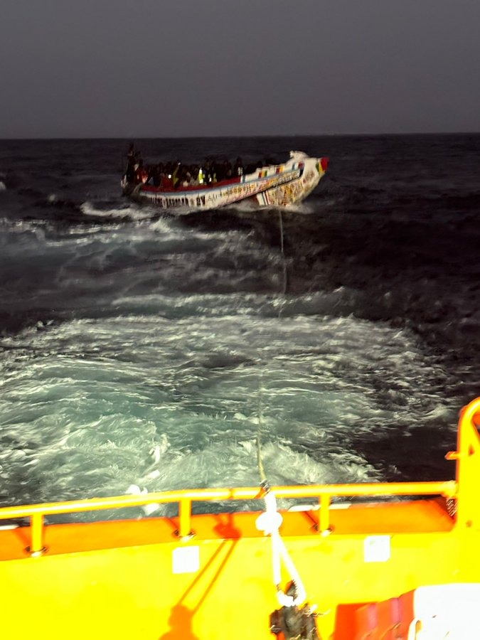 Las personas que iban a bordo de este cayuco proceden de Mali, Senegal, Mauritania y Pakistán y han explicado que partieron hacia Canarias hace ocho días desde Saint Louis, en el norte de Senegal.