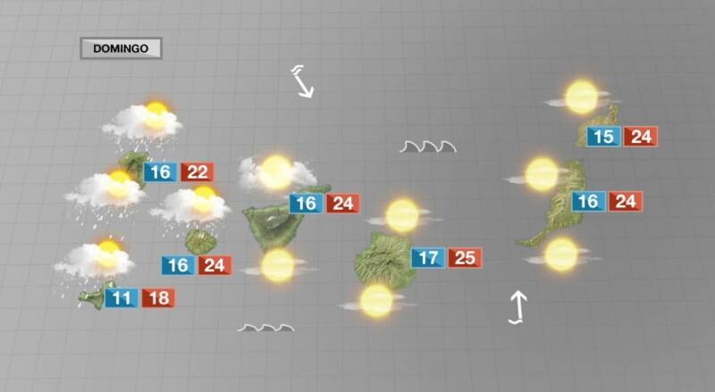 Tenerife: La mañana soleada dará paso a una tarde de nubes y por la noche lloverá en parte del norte de la isla. Las precipitaciones se extenderán a otras zonas y se intensificarán en la madrugada del lunes, probablemente nevará en Las Cañadas del Teide.