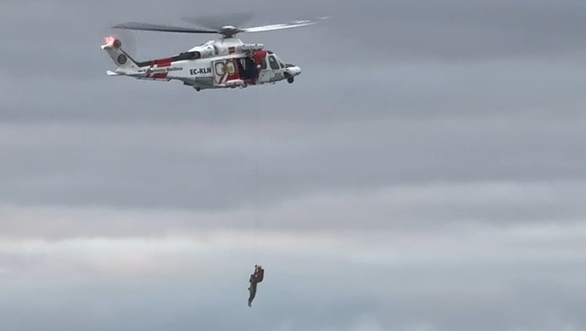 Rescatadores del helicóptero Helimer de Salvamento Marítimo auxiliaron a dos de los afectados del mar y los evacuaron hasta la helisuperficie del citado hospital donde, y una vez en tierra, personal del Servicio de Urgencias Canario (SUC) les valoró y asistió para trasladarles luego al centro sanitario.