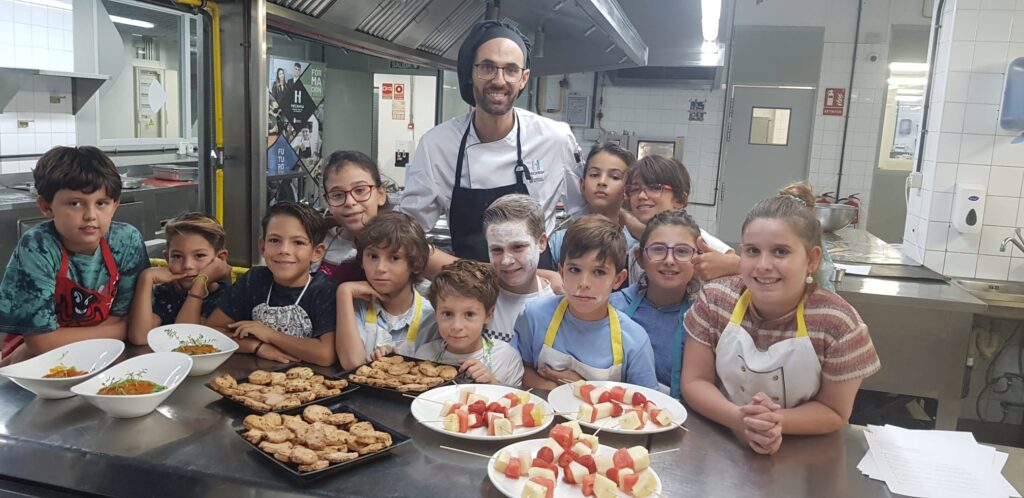 Durante la jornada, y bajo la dirección del personal de cocina, los niños y niñas participantes han podido elaborar tres recetas con productos locales: un primer plato, los raviolis tricolor rellenos de pollo; un segundo, galletas blanquinegros de vainilla y, por último, brochetas de fruta. Durante su elaboración, han tenido también la oportunidad de conocer algunas propiedades de estos alimentos y descubrir por qué es tan importante el consumo de los productos de cercanía.