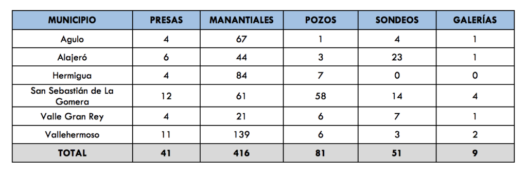 El Plan Hidrológico de La Gomera 2015 – 2021 establece que el Consejo Insular de Aguas de La Gomera debe impulsar la explotación sostenible de los nacientes y cauces «mediante la implantación de formas de explotación que capten únicamente