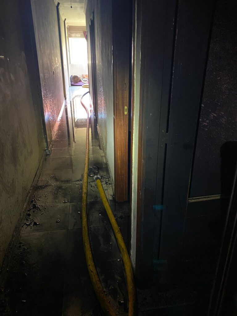 Dos dotaciones de bomberos del parque de Arinaga fueron necesarias para extinguir el incendio. Utilizaron 500 litros de agua para apagar un fuego que se propagó con rapidez. Las llamas destrozaron una habitación y afectaron parcialmente al resto de la vivienda.