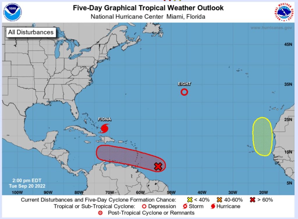 Según ha publicado en su cuenta de Twitter: «Los datos satelitales indican que la onda tropical ubicada a varios cientos de millas al este de las Islas de Barlovento se ha organizado mejor. Se espera un desarrollo adicional y es probable que se forme una depresión tropical en los próximos días».